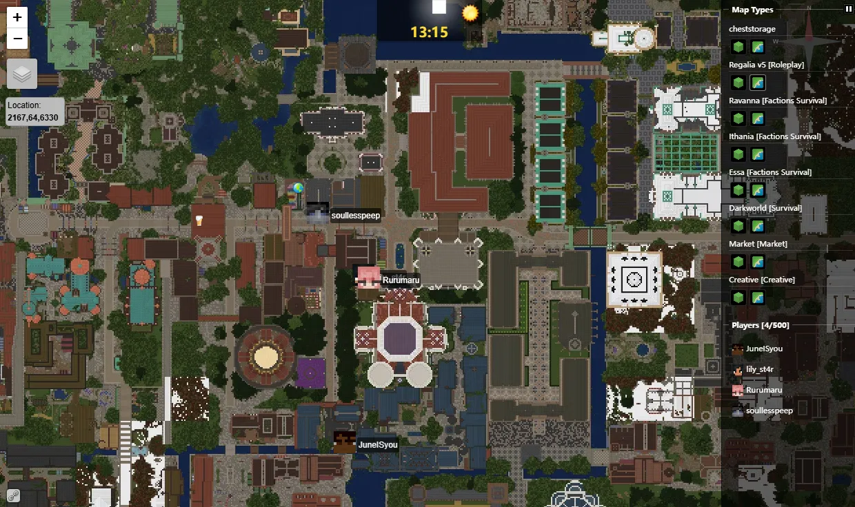 一款历史悠久的卫星地图 mod,支持用户在浏览器上查看服务器内的地图、玩家信息和其它一些附属功能,例如出生点、当前时间、是否下雨等,支持 2D 俯视角视图和 3D 俯视角视图查看。