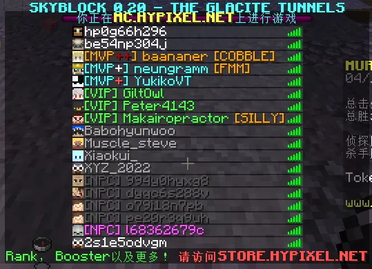 你按下 TAB 键会出现的玩家列表